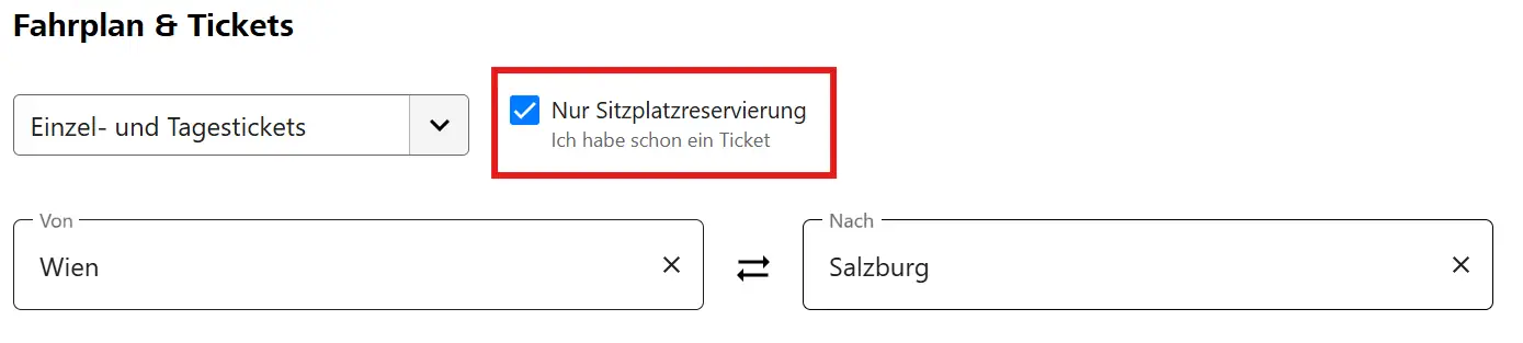 “Nur Sitzplatzreservierung - Ich habe schon ein Ticket”